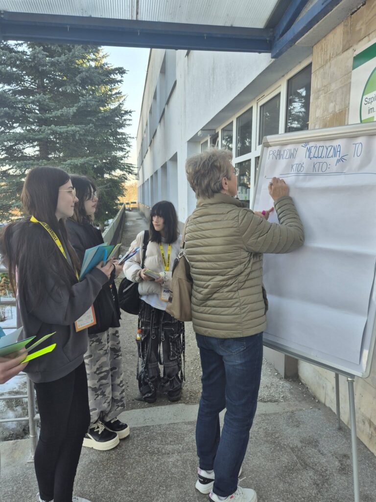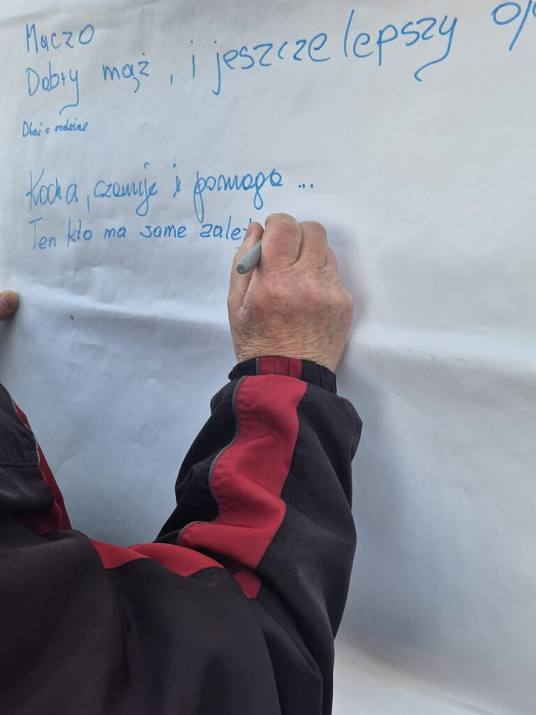 Odpowiedzi było wiele – od tych podkreślających odpowiedzialność i troskę o innych, po te mówiące o empatii, odwadze i gotowości do pomagania. Każda z osób, która dołączyła do naszej akcji otrzymała drobny upominek. Spotkanie stało się przestrzenią do wartościowych rozmów oraz wspólnej refleksji nad tym, jak budować relacje oparte na szacunku i wsparciu.