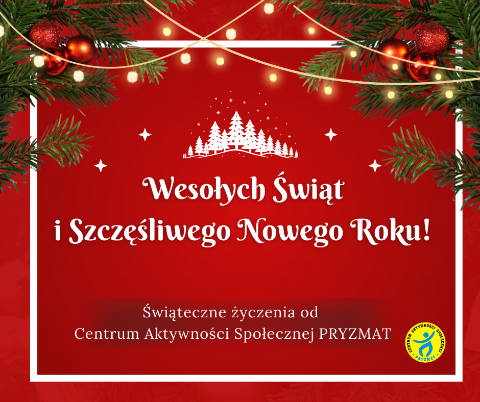 Z okazji Świąt Bożego Narodzenia życzymy Wam czasu pełnego spokoju, ciepła i bliskości – takiej, która daje siłę na kolejne dni. Niech ten wyjątkowy czas będzie momentem wytchnienia, refleksji i radości ze wspólnego bycia razem.